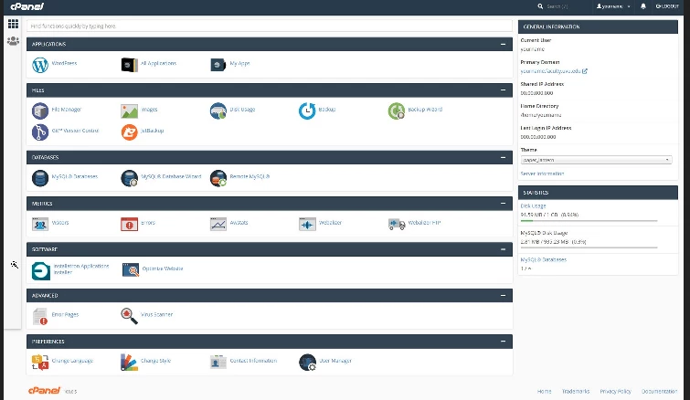 cPanel is een dashboard voor het beheer van uw Webhosting. Alle beheer activiteiten kunnen vanuit cPanel worden uitgevoerd. Installeren van Software (WordPress, Backup, enz) Maak zelf de gewenste mail adressen, subdomein, enz